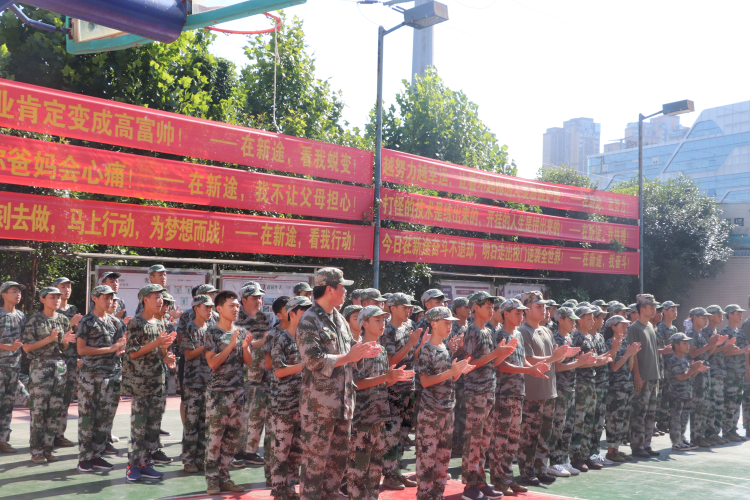精神抖擞,口号响亮,